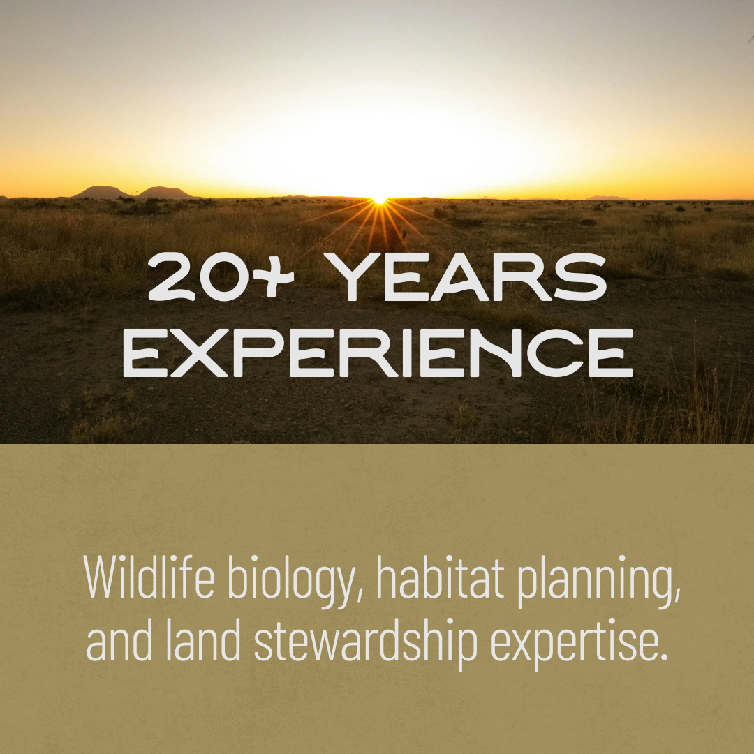 We are a husband and wife team with 20+ years of experience in wildlife management, biology, conservation, agricultural farming, and building partnerships with private landowners in Texas.