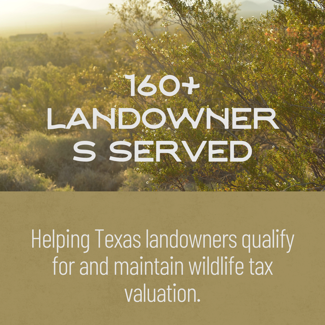With more than 20 years of combined experience in wildlife biology, land stewardship, and conservation planning, Lupine Land Services has helped over 160 private landowners successfully navigate wildlife tax valuation requirements and improve habitat across the Texas Hill Country and beyond.